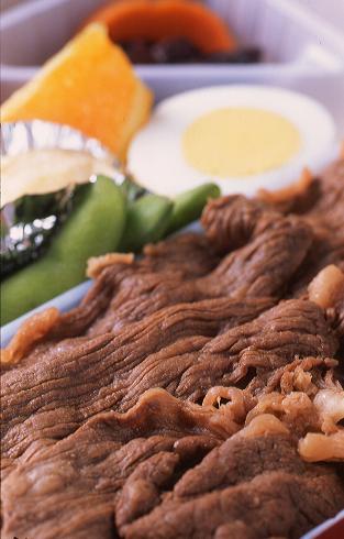 | すきやき弁当 雑誌などで紹介される機会は少ないのだが、食べてびっくりの一押しのお弁当を発見した。それは古い町並みと歴史的文化の香りのする小諸にあった。 お弁当の形はほぼ真四角で、膝の上に乗せ、割り箸を両手で、ぱちんと割るときにも安定感がよい。と、妙に感心をしながらふたを開けると、ご飯に覆い被さるように敷きつめられ、折り重ねられた和牛が目に飛び込んできた。思わず「おお」と叫びたくなるほどの感動だ。 そして、肉一枚の大きさの大きいことには驚きである。これだけの肉が駅弁で、かつ、920円で食べられると言うのは実にうれしい。 「すきやき」と聞けば肉を争って食べた子供の頃を思い出してしまうが、このように肉は大きくなかった。これを一人でゆっくりと味わえる喜びにしばしひたっていた。 このあたりの牧場では牛にリンゴを食べさせるところがあるそうだ。そのためであろうか。肉質の柔らかさも特筆すべき点で、味も大変濃厚。牛肉本来ののしっかりとした味わいを楽しむことができる。 私の経験では、高級和牛肉の産地は色々とあるが、「肉にこんなに味があるのか」と教えてくれたのが、信州牛であった。今回のこの弁当でもそのことがはっきりとして、さらに信州牛のファンになってしまった。 ミニトマト、生野菜、ゆで卵、山くらげ、じゃがいもの唐揚げ、枝豆、箸休めは大根の味噌漬け、しば漬け、金時豆の三種類、そしてオレンジと言った、副食が並ぶ。ボリューム満点若い人に大人気のお弁当だ。 |